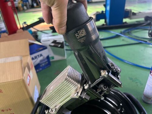 インテークマニホールドの上側、下側を外してエンジンオイルフィルターブロック取替。