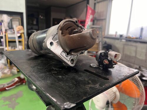 スターターモーターのピニオンが飛び出さずに空転してました。