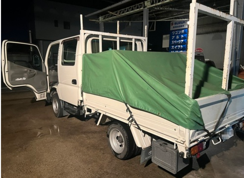 「エアサスが下がりきってボディにタイヤが接触してて動けません」と。