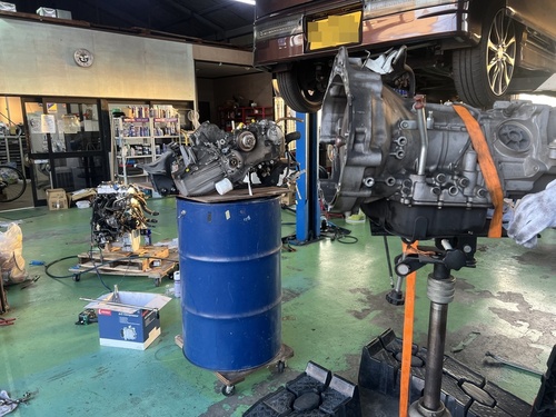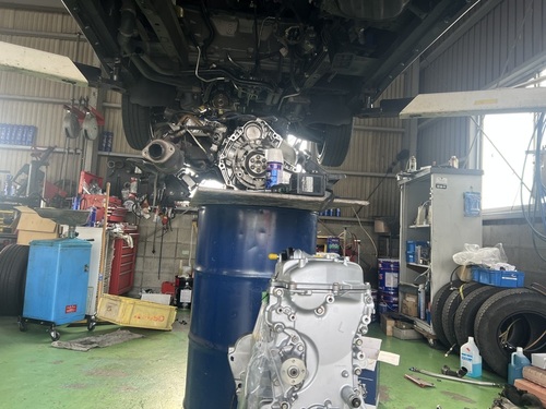 お店に帰ってからエンジン乗っけて、オートマのドッキングや!!で作業してると、なんかおかしい…
