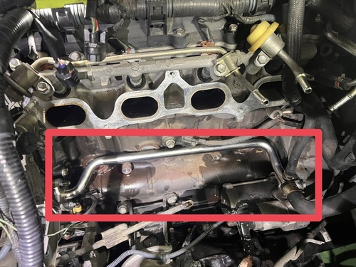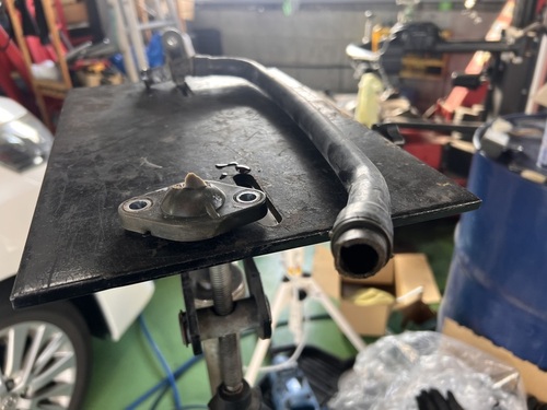 見ると、ウォーターバイパスパイプが割れてます